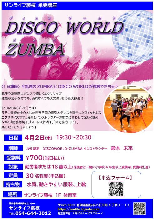 • ≪4月2日(木)DISCO WORLD / ZUMBA≫申込みフォーム